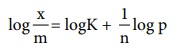 x என்பது ‘m' கிராம் நிறையுள்ள பரப்பு பொருளின் மீது கவரப்பட்ட பரப்பு கவர் பொருளின் அளவு.