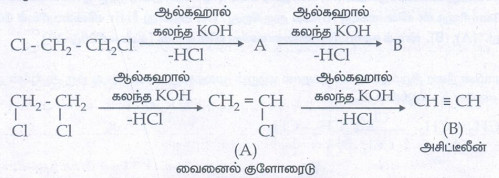 (ii) விசினைல் டைஹாலைடுகளை ஹாலஜன் நீக்கம் செய்து, ஆல்கைன்களை உருவாக்குதல்.