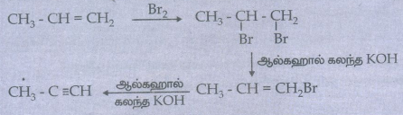 1. ஆல்கைன்களை ஆல்கீன்களிலிருந்து தயாரித்தல்: