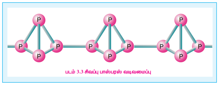 பாஸ்பரஸ் அடுக்கு அமைப்பைப் பெற்றுள்ளது மேலும் இது குறைக்கடத்தியாக செயல்படுகிறது. நான்கு பாஸ்பரஸ் அணுக்களால் ஆன P4 நான்முகி அலகுகள் இணைந்து உருவான சங்கிலிப் பலபடி அமைப்பில் உள்ளன.நைட்ரஜன் போலல்லாமல் P-P ஒற்றைப் பிணைப்புகளைவிட P≡P முப்பிணைப்புகள் வலிமை குறைந்தவை.அதாவது, பாஸ்பரஸ் அணுக்கள் முப்பிணைப்புகளுக்கு பதிலாக ஒற்றை பிணைப்புகளால் பிணைக்கப்பட்டுள்ளன. இந்த இரண்டு புறவேற்றுமை வடிவங்களைத் தவிர ஸ்கார்லெட் பாஸ்பரஸ் , ஊதா நிற பாஸ்பரஸ் என மேலும் இரண்டு புறவேற்றுமை வடிவங்களை பாஸ்பரஸ் பெற்றுள்ளது.