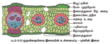 இலையின் உள்ளமைப்பு - புல்லின் இலை:-