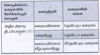 38. A என்ற திடப்பொருள் மற்றும் அதன் மூன்று கரைசல்கள் (i) ஒரு தெவிட்டிய கரைசல், (ii) ஒரு தெவிட்டா கரைசல் மற்றும் (iii) ஒரு மீ தெவிட்டிய கரைசல் ஆகியன உன்னிடம் வழங்கப்பட்டுள்ளது. எந்த கரைசல் என்ன வகையானது என எவ்வாறு கண்டறிவாய்?