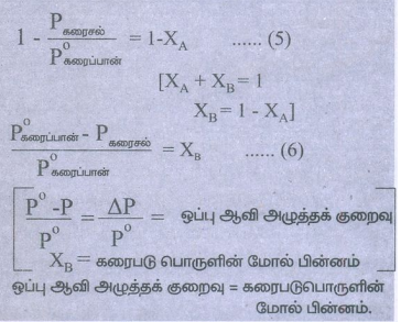 l - P கரைசல் / Poகரைப்பான் = l - XA ..... (5)