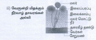 iv) நீருள் மூழ்கி வேரூன்றிய நீர்வாழ் தாவரங்கள் . வாலிஸ்நேரியா