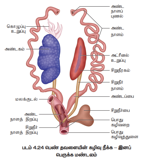 • சிறுநீரக நாளம் கழிவுநீக்க - இனப்பெருக்க பாதையாகிப் பொதுக்கழிவறையில் திறக்கிறது.