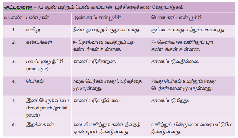 30. ஆண் மற்றும் பெண் கரப்பான்பூச்சியை வேறுபடுத்துக.