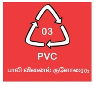 • டையாக்ஸினோடு தொர்புடைய நெகிழி வகை ரெசின் குறியீடு #3 PVC