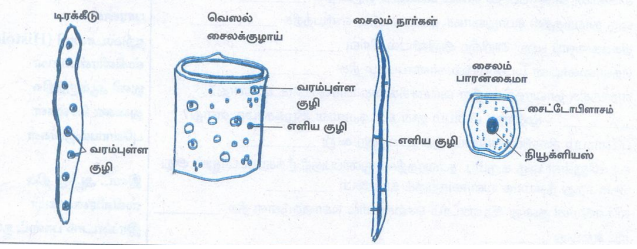 • தடித்த மற்றும் ‘லிக்னின்' சுவரைக் கொண்ட இறந்த செல்களாகும்.