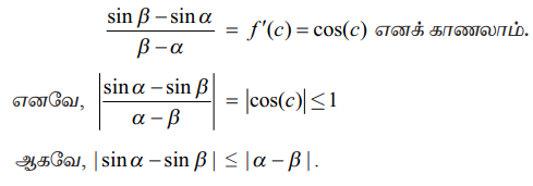 sin β - sin α / β - α = f'(c) = cos(c) எனக் காணலாம்.
