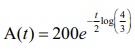 அதாவது t = 0 எனும்போது A = 200 ஆகும். எனவே, சமன்பாடு (1)லிருந்து, C = 200 எனப் பெறுகிறோம்.