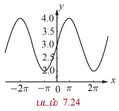 (-π, 0) எனும் இடைவெளியில், d2y / dx2 > 0 மேலும் இதிலிருந்து (-π, 0) -ல் சார்பு மேல்நோக்கி குழிவு. (0, π) எனும் இடைவெளியில் d2y / dx2 < 0, மேலும் இதிலிருந்து (0, π) -ல் சார்பு கீழ்நோக்கி குழிவு. ஆகவே, (0,3) என்பது வளைவு மாற்றப்புள்ளி ஆகும் (படம் 7.24ஐ பார்க்க). (n π,(n+1) π ) என்ற பொதுவான இடைவெளிகளைக் கருதும்போது (π ஒரு முழு எண்), இவ்விடைவெளிகளில் குழிவுத்தன்மையை ஆராய வேண்டும். இதனை மேற்கூறியவாறே ஆராய நாம் (nπ,3) ஆகியவை வளைவு மாற்றப்புள்ளிகள் என அறியலாம்.