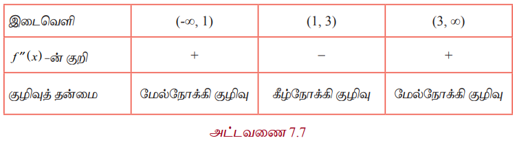 (ii) f'(x) ஆனது திறந்த இடைவெளி I-ல் திட்டமாக இறங்கும் எனில், f (x) ஆனது I-ல் கீழ்நோக்கி குழிவு ஆகும்..