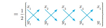 = 1/2 {(x 1y2 + x 2y3 + x 3y4 + x 4y1) − (x 2y1 + x3y2 + x4y3 + x1y4)} சதுர அலகுகள்.