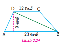 சரிவகத்தின் இணைப்பக்கங்கள் முறையே 23 செ.மீ, 12 செ.மீ. இணைப்பக்கங்களுக்கு இடையே உள்ள தூரம் 9 செ.மீ எனில், சரிவகத்தின் பரப்பளவு காண்க.