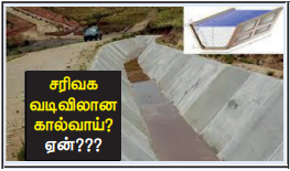நீர்ப் பாசனக் கால்வாய்களுக்குப் பல்வேறு பொதுவான வடிவ அமைப்புகள் இருந்த போதிலும். சரிவக வடிவிலான அமைப்புகள் மட்டுமே பெரும்பாலான இடங்களில் பயன்படுத்தப்படுகின்றன. ஏனெனில், அதிகப்படியான மழைப் பொழிவின் போது நிரம்பி வழிதலைத் தடுக்கவும், குறைந்த நேரத்தில் நீர் சென்று சேருவதை உறுதிப்படுத்தவும், யாரேனும் அல்லது ஏதாவது தவறி விழுந்துவிட்டால் பாதுகாப்பு நடவடிக்கைகள் மேற்கொள்ளவும் வசதியாக இருக்கும்.