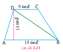 சரிவகத்தின் பரப்பளவு = ∆ABD ன் பரப்பு + ∆BCD ன் பரப்பு