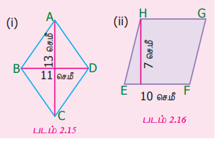 2. படம் 2.15 லும் படம் 2.16 லும் கொடுக்கப்பட்டுள்ள சாய்சதுரத்தின் பரப்பளவு காண்க