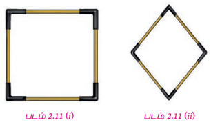 சம அளவுகள் கொண்ட நான்கு குச்சிகளையும், நான்கு வால்டியூப்களையும் எடுத்துக் கொள்க. படம் 2.11(i)இல் உள்ளவாறு நான்கு குச்சிகளையும் வால்டியூப்பையும் இணைத்து ஒரு சதுரம் உருவாக்குக, பிறகு படத்தில் காட்டியுள்ளவாறு எதிரெதிர் உச்சிகளை நெருக்கமாகக் கொண்டு வருக. (எதிர்ப் பக்கங்களின் இணை மாறாதவாறு). இப்போது கிடைக்கப்பெற்ற புதிய வடிவத்தையே சாய்சதுரம் என்கிறோம்.