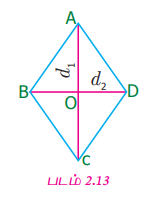 ABCD என்ற சாய்சதுரத்தில் AB = BC = CD = DA, மூலை விட்டங்கள் AC (d1) மற்றும் BD (d2) ஒன்றுக்கொன்று செங்குத்து ஆகும்.