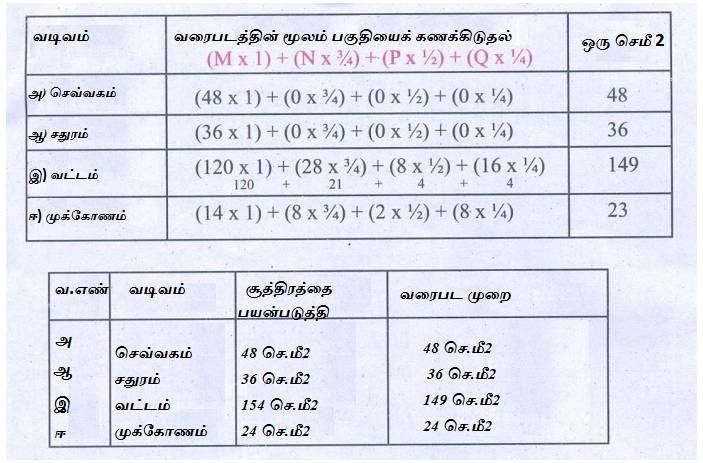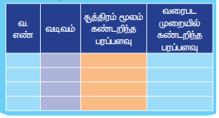 அட்டவணை 1.3 ஒழுங்கான வடிவமுள்ள பொருள்களின் பரப்பளவு