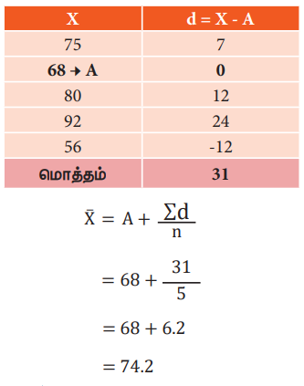 இங்கு A = அனுமானிக்கப்பட்ட கூட்டுச் சராசரி