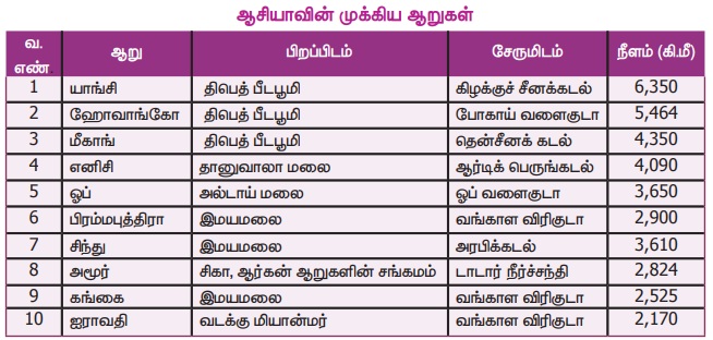 நிலத் தோற்றங்களாகும். வற்றாத ஆறுகள் ஆசியாவின் பல்வேறு நிலப்பரப்புகளில் பாய்கின்றன.