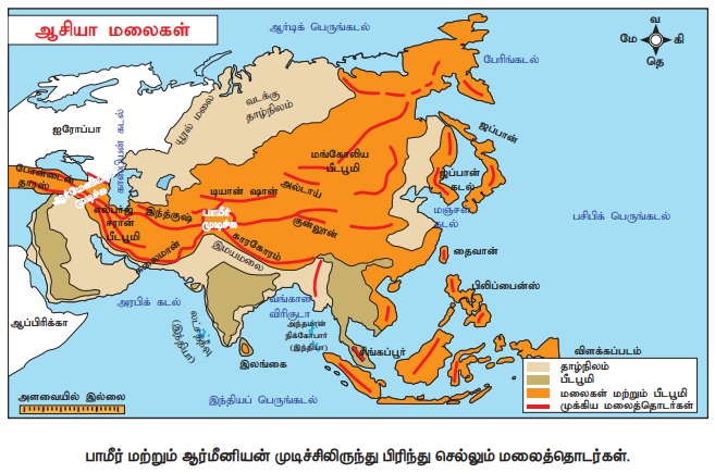 வரை விரிந்து காணப்படுகின்றன. ஆசியாவில் இரு மலை முடிச்சுக்கள் காணப்படுகின்றன. அவை,
