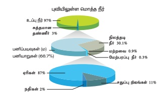 மொத்த நீரின் அளவு மிகக் குறைவாகவே உள்ளது என்பதனை அறியலாம். எனவே நாம் நீரினை மிகுந்த