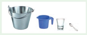500 மி.லி குவளை, ஒரு 150 மி.லி டம்ளர் மற்றும் 1 மி.லி தேக்கரண்டி (ஸ்பூன்) ஆகியவற்றினை
