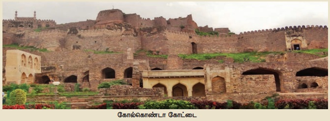கோல்கொண்டா கோட்டை: ராஜா கிருஷ்ண தேவ் என்ற வாரங்கல்லைத் தலைநகராகக் கொண்ட காகத்திய வம்ச அரசர் கட்டிய கோட்டை இது. 1495-1496இல் இக்கோட்டை சுல்தான் குலிகுதுப்ஷாவிற்கு ஒரு ஜாகீராகத் (நிலமாக) தரப்பட்டது. அவர் அக்கோட்டையைக் கருங்கற்கள் கொண்டு புனரமைத்தார். அதன்பின் இக்கோட்டைப் பகுதி இருந்த நகரம் முகம்மது நகர் எனப்பட்டது. பிற்காலத்தில் பாமினி அரசின் கைவசமாகி, அதன்பின்னர் குதுப்ஷாகி வம்ச அரசின் தலைநகரானது. குதுப்ஷாகி வம்சத்தின் ஐந்தாவது சுல்தானான முகம்மது குலி குதுப்ஷா காலத்தில் கம்பீரமான கோட்டையாக கோல்கொண்டா கோட்டை திகழ்ந்தது. பாமினி சுல்தானியத்தின் வீழ்ச்சிக்குபின் இந்நகரம் வளர்ச்சியடைந்தது. 17ஆம் நூற்றாண்டில் கோல்கொண்டா ஒரு சிறந்த வைரச் சந்தையாகத் திகழ்ந்தது. கோஹினூர் வைரம் உட்பட மிகச்சிறந்த வைரங்களை உலகிற்கு வழங்கியது.