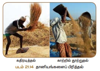 வேண்டும். அவ்வாறு, தானியங்ளைப் பிரித்தெடுக்கும் செயல் காற்றில் தூற்றுதல் எனப்படும்.