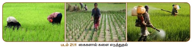 மண்ணை உழுதல், பயிர்களுக்கு உரமிடுதல், களைகளை நீக்குதல் நிலத்திலிருந்து