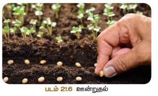 விதையானது ஈரப்பதமுள்ள மண்ணுடன் தொடர்பு கொள்ளும் வகையில் விதை இடப்பட்ட துளையைச் சுற்றியுள்ள