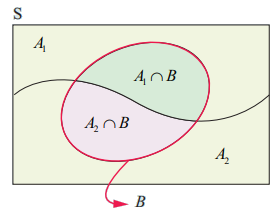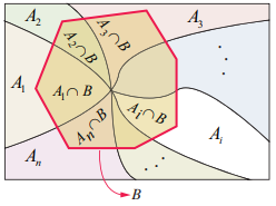 A1, A2, A3,..., An என்பன ஒன்றை ஒன்று விலக்கிய யாவுமளாவிய நிகழ்ச்சிகள் மற்றும் B என்பது S எனும் கூறுவெளியில் உள்ள ஏதேனும் ஒரு நிகழ்ச்சி எனில்