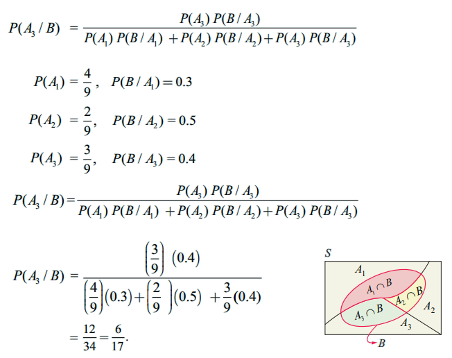 இங்கு நாம் சார்புநிலை நிகழ்தகவு P(A3 / B) -யினைக் காணவேண்டும்.