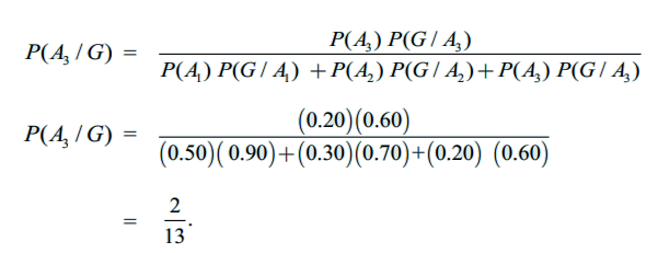 P(A3) = 0.20, P(G/A3) = 0.60.