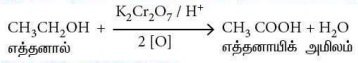 இ) எத்தனால் அமில பொட்டாசியம் டை குரோமேட்டுடன் புரியும் ஆக்ஸிஜனேற்ற வினை.