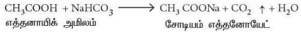 ஆ) எத்தனாயிக் அமிலம் NaHCO3 வினைபுரிந்து CO2