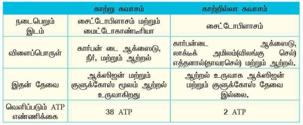 காற்று சுவாசத்தை விட காற்றில்லா சுவாசம் குறைவான ATP மூலக்கூறுகளை உற்பத்தி செய்கிறது.
