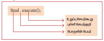 பொருளின் உறுப்புச் செயற்கூறை அழைத்தல் என்பது பொருளுக்கு செய்தியை அனுப்புவது அல்லது தொடர்பு கொள்ளுதல் ஆகும்.
