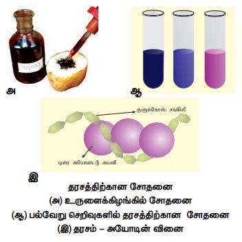 தரசத்தை சோதிப்பதற்குப் பொட்டாசியம் அயோடைடில் உள்ள அயோடின் கரைசலைப் பயன்படுத்தலாம். அயோடின் மூலக்கூறுகள் தரசத்தின் பாலிமர் சங்கிலியின் சுருள்களில் நெருக்கமாகப் பொருந்திக் கரு-நீல நிறத்தை உண்டாக்குவதே இதற்குக் காரணமாகும்.