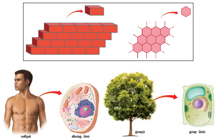 எவ்வாறு கட்டடம் மற்றும் தேன் அடையில் பல அலகுகள் காணப்படுகிறதோ அதுபோல் நமது உடலும் பல செல்களால் ஆனது. உயிரினத்தின் அடிப்படை செயல் அலகு செல் என்று அழைக்கப்படுகிறது.