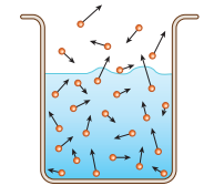 ஒரு குவளையில் நீரினை எடுத்துக் கொள்ளவும். அதில் உள்ள நீர் மூலக்கூறுகள் இங்கும் அங்கும் வெவ்வேறு திசைவேகத்தில் (படத்தில் வெவ்வேறு அளவிலான அம்புகுறிகளாக காட்டப்பட்டுள்ளது) நகர்ந்தபடி இருக்கும். சில மூலக்கூறுகள், அதிலும் குறிப்பாக நீரின் மேற்பரப்பில் உள்ள மூலக்கூறுகள் திரவத்தினைவிட்டுவிலகியபடி எதிர்திசையை நோக்கி, அதாவது காற்றினை நோக்கி நகர போதிய அளவு ஆற்றலைப் பெற்று, நீரின் பரப்பு இழுவிசையினையும் தாண்டி, திரவ கலனை விட்டு ஆவியாக வெளியேறுகிறது. நேரம் ஆக ஆக, கலனில் உள்ள நீரின் அளவு தொடர்ந்து குறைந்து வருகிறது.