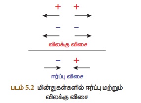 ஒன்றையொன்று விலக்கிக் கொள்கின்றன. வேறின மின்துகள்கள் ஒன்றையொன்று கவர்கின்றன.