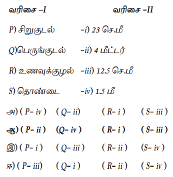 16. கூற்று (கூ) : சிறுகுடலைப்போலப் பெருங்குடலிலும் உறிஞ்சிகள் உள்ளன.