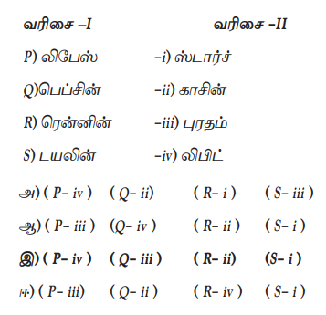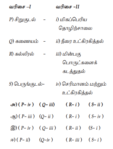 விடை: அ) (P - iv) (Q - iii) (R - i) (S - ii)