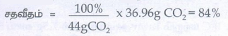மாதிரியினுடைய தூய்மைத் தன்மையின் சதவீதம் = (100% / 44g CO2) × 36.96g CO2 = 84%