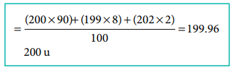(200 × 90) + (199 × 8) + (202 × 2) / 100 = 199.96