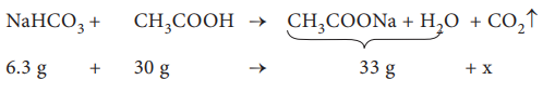 8. 6.3g சோடியம் பை கார்பனேட்டை, 30g அசிட்டிக் அமில கரைசலுடன் சேர்த்த பின்னர் எஞ்சியுள்ள கரைசலின் எடை 33g. வினையின்போது வெளியேறிய கார்பன்டையாக்ஸைடின் மோல் எண்ணிக்கை