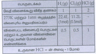 9. STP நிலையில் உள்ள 22.4 லிட்டர் H2 (g) வாயு, 11.2லிட்டர் Cl2 வாயுடன் கலக்கப்படும்போது உருவாகும் HCl (g) வாயுவின் மோல் எண்ணிக்கை